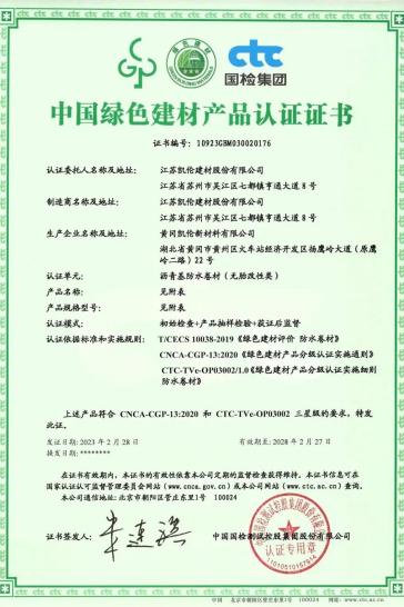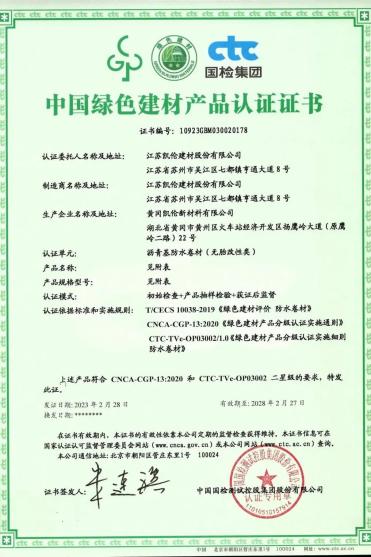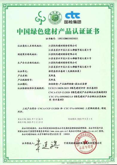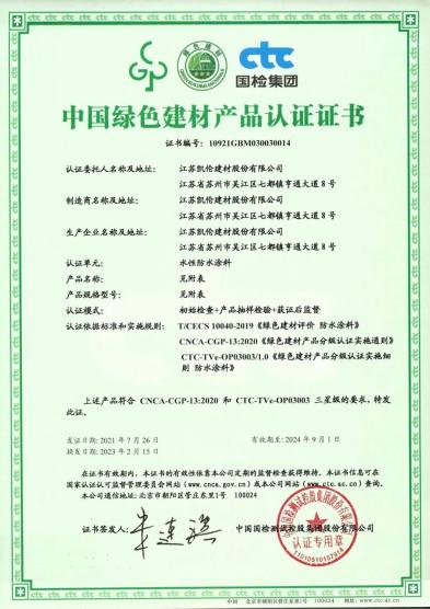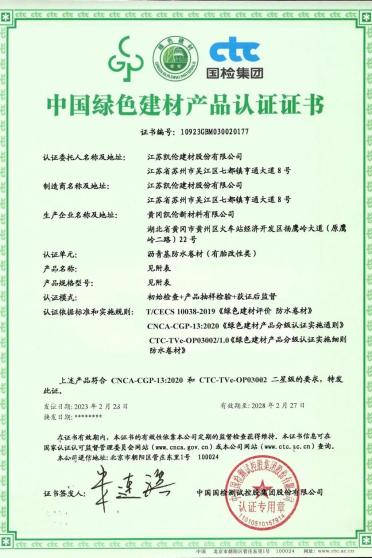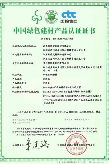 Среди них производственная база в Сучжоу получила «Китайский сертификат сертификации экологически чистых строительных материалов» в общей сложности по 26 категориям, что на 17 категорий больше, чем первоначальные 9 категорий.