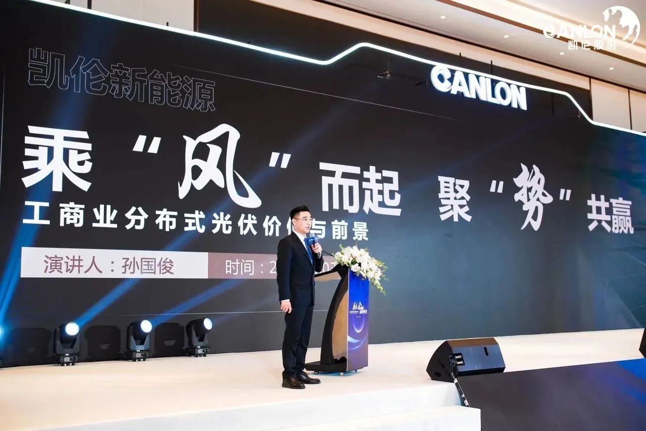 Сунь Гоцзюнь, генеральный директор Канлон Компания New Energy Technology Co., Ltd. поделилась темой «Ехать на ветру, набирать обороты и взаимовыгодно: ценность и перспективы распределенной промышленной и коммерческой деятельности». Pгорячеэлектрический' . В рамках этого обмена тем основное внимание уделяется созданию Канлон New Energy представляет системные услуги компании и помогает партнерам глубже понять структуру и преимущества интегрированных фотоэлектрических кровельных систем.