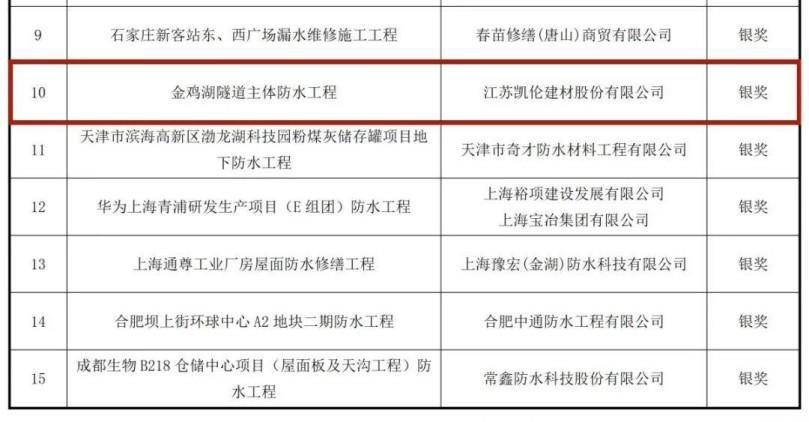 Среди них компания Canlon получила серебряную награду за инженерные технологии за проект «Основной гидроизоляционный проект туннеля озера Джинджи» , еще раз убедительно продемонстрировав превосходное качество встроенной гидроизоляционной системы.