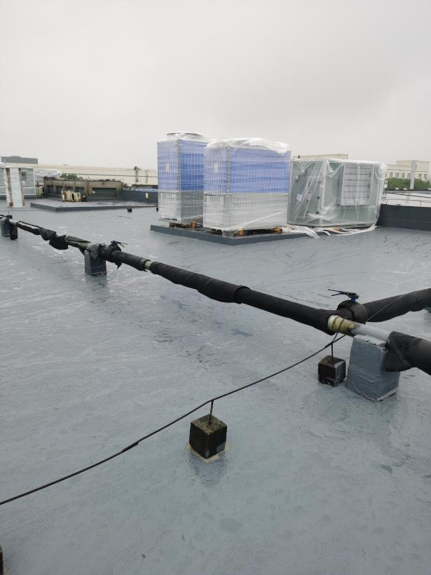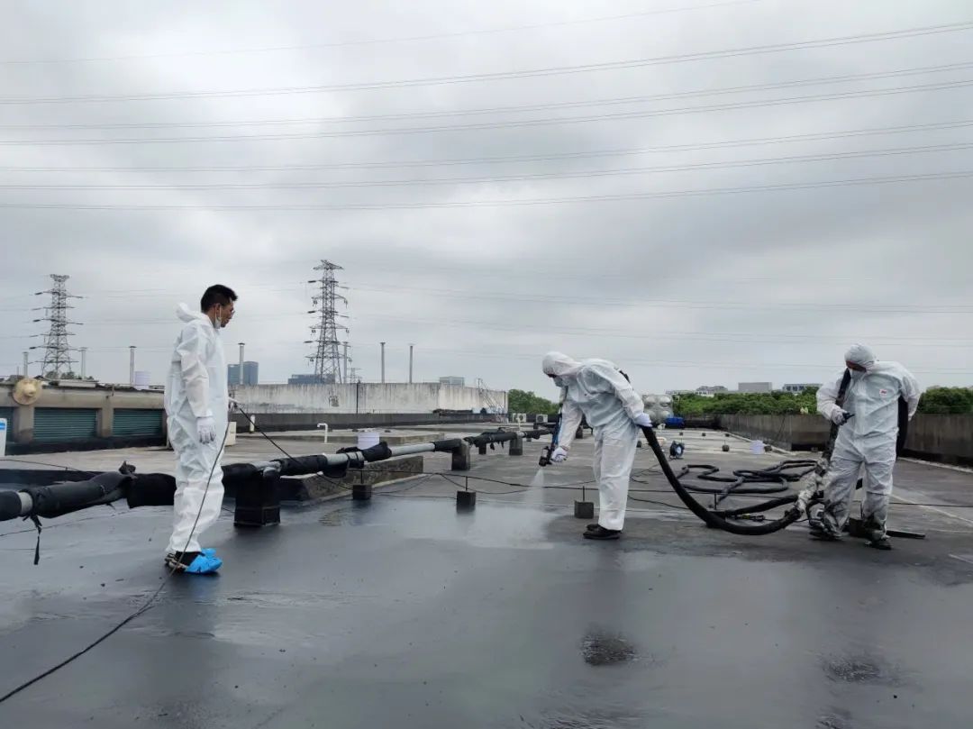 Сначала обслуживающий персонал повторно очистил основание крыши, отремонтировал локальные дефекты, снял кровельное оборудование, добавил выхлопные трубы, покрасил покрытие эпоксидной смолой для фиксации песка и, наконец, выполнил установку водонепроницаемого покрытия толщиной 1,5 мм, чтобы полностью обеспечить прочность. и устойчивость гидроизоляционного слоя.
