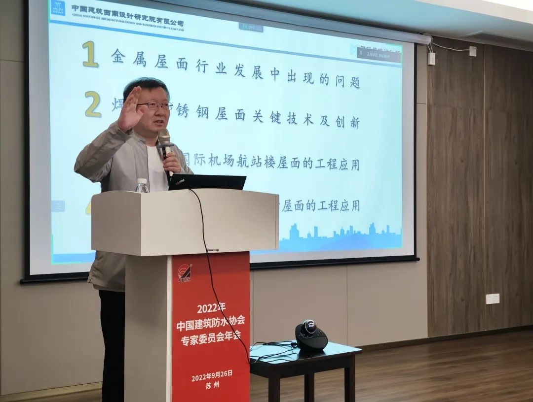 Г-н Донг Бяо, старший инженер и главный инженер Института проектирования навесных стен зданий Юго-западного строительного института Китая, поделился темой «Сварка кровельной системы из нержавеющей стали» и представил ключевые технологии и направления исследований и разработок кровельных изделий из нержавеющей стали. инновации.