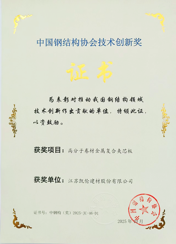 На конференции Лю И, исполнительный вице-президент Китайской ассоциации стальных конструкций, председательствовал на церемонии награждения «Премии за технологические инновации» Китайской ассоциации стальных конструкций 2025 года. Проект компании Canlon « Интегрированная сэндвич-панель с полимерной мембраной и металлом » получил эту престижную награду за лидирующие в отрасли инновации и практичность. Ван Ячжоу, генеральный директор научно-исследовательского центра прикладных технологий Canlon , принял награду от имени компании-победителя.