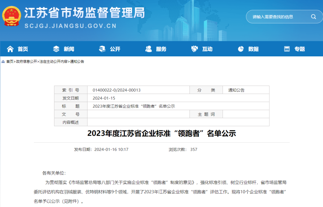 Список «лидеров» в области корпоративных стандартов представляет собой работу по оценке, проведенную по заказу Провинциального бюро по надзору за рынком с целью укрепления лидерства в области стандартов и установления отраслевых эталонов агентством по оценке в 9 областях, включая пуховую одежду, высококачественные специальные стальные материалы и строительство. Водонепроницающая мембрана. с.Всего выбрано 10 компаний.