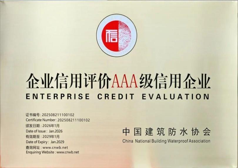 Система кредитных рейтингов, разработанная Китайской ассоциацией гидроизоляции зданий, является научной и строгой, она всесторонне оценивает предприятия по нескольким параметрам, включая базовый кредит, операционные возможности, финансовую устойчивость, управленческие возможности, социальный кредит и тенденции развития. Рейтинг ААА, самый высокий уровень в этой системе, представляет собой отличную кредитную историю, сильные возможности исполнения контрактов и широкие перспективы развития. Недавний рейтинг Canlon напрямую отражает ее всеобъемлющие преимущества в области корпоративного управления, качества продукции, исполнения контрактов, обслуживания клиентов и социальной ответственности, достигнув первоклассного уровня в отрасли, обеспечивая надежную гарантию доверия для партнеров и клиентов.